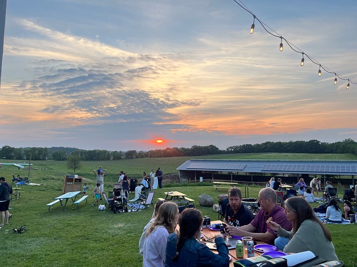 The morning after our inaugural Pizza Farm date, I reflected in my journal: “The sun has set, but it wasn’t dark and mosquitoey yet. It was that happy in between, where the daylight echoes in the sky before handing the baton to the stars and moon.” I awed over the Pizza Farm like some Mary Oliver prodigy. It was THAT magical.