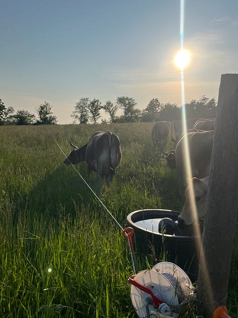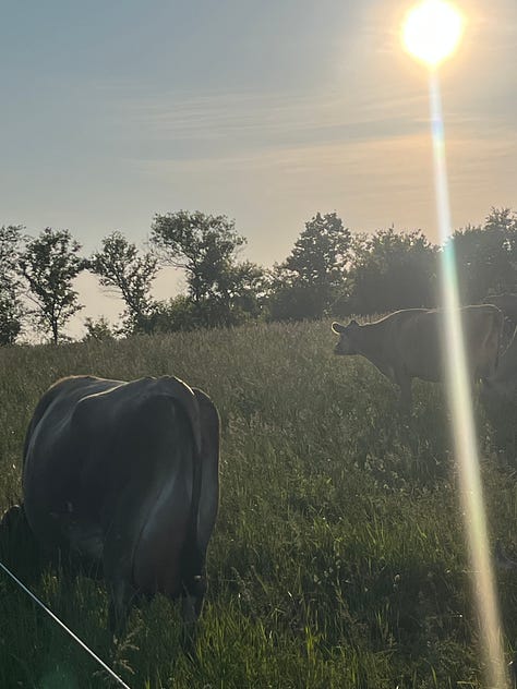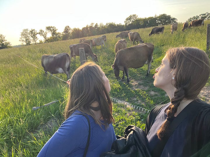 “Let’s walk by the cows!” I pointed to the desolate barbed-wired area, glistening under the sun. Lucy followed my lead as we strolled past a group of kids playing Gaga (a hallmark of my four years at a Jewish private school), then a couple of teen boys zipping a baseball back and forth. As we approached the cows, the music and kiddie screams faded; the smell of pizza dissipated and was replaced by cow shit. Lots and lots of cow shit.